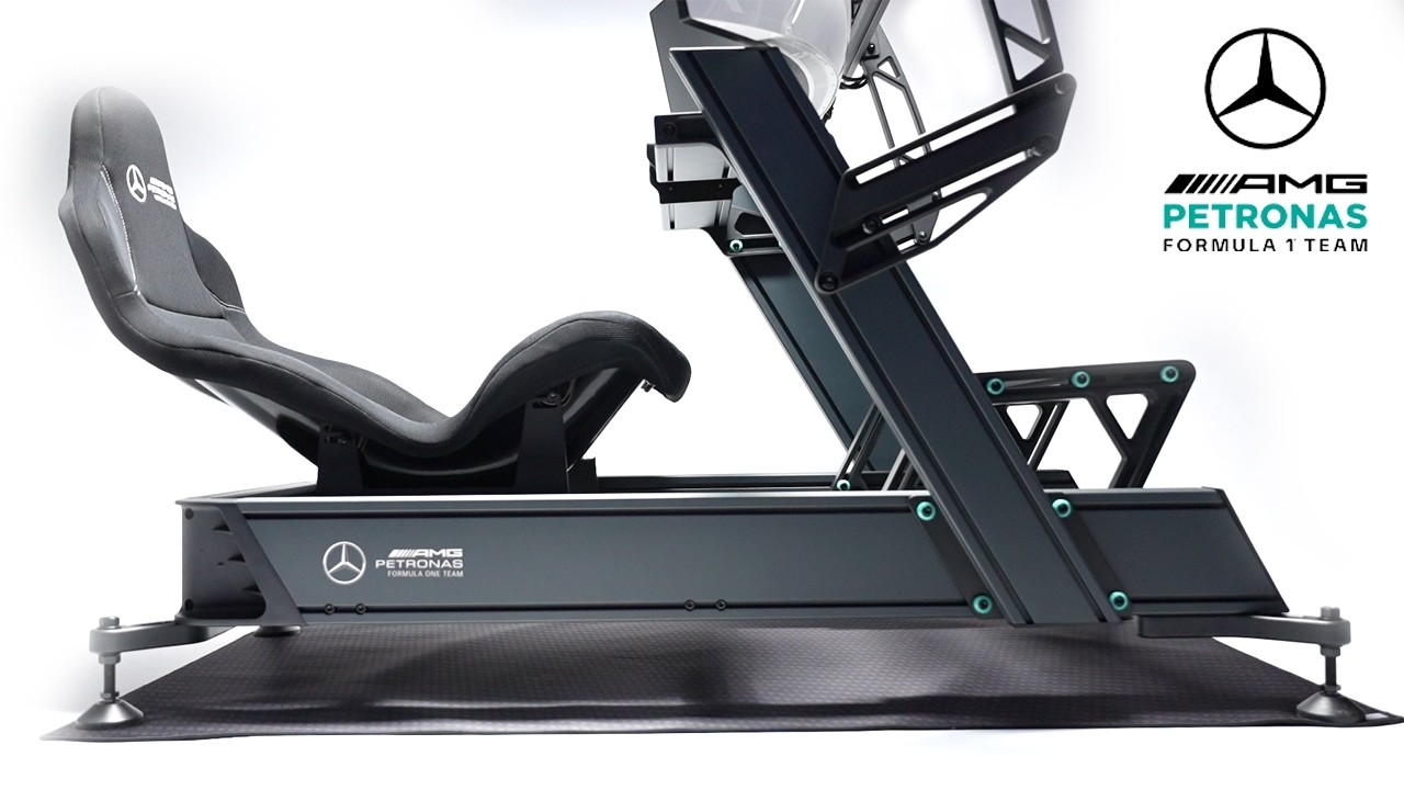 This is the brand new Mercedes AMG Petronas Formula 1 Team Sim Racing Cockpit. Yes, that is the full official product name, and yes, Simlab have once again teamed up with the Mercedes F1 team. This marks their second licensed product with the team following the previously released F1 wheel, and this time they have gone even bigger with a full Formula style chassis.